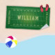O campo de futebol americano personalizou a toalha de praia para crianças com um nome no centro e um touchdown nas extremidades.