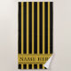 Elevate your beach and poolside style with this custom black beach towel featuring striking metallic gold stripes and personalized name detail. Crafted for comfort and visual impact, it’s ideal for vacations, spa days, or everyday luxury lounging. A sleek, thoughtful gift that blends modern elegance with practical use for sun-filled escapes.