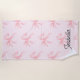 Make her summer essentials extra special with this Personalized Cute Coquette Pink Bow Beach Towel. Designed in a generous beach size, this towel features a delicate watercolor ribbon bow pattern on a soft light pink background, customized with her name in elegant script calligraphy for a sweet and stylish look.