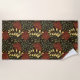 Seamless pattern featuring repeating dark red maple leaves, pale yellow sprigs, and dark green swirling vines on a dark brown background.