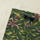 Seamless pattern featuring pink flowers and green leaves on a dark background. The arrangement is symmetrical, evoking a natural, elegant feel.