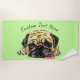Pug Dog Funny Beach Towers com Texto Personalizado - Pintura MIGNED - Personalizável - Escolha / Adicione Seu Texto e Cores