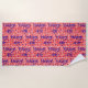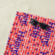 Imagem criativa, projetada nesta arte gráfica, do texto azul escuro "Happy Quarta", exibido contra um, vermelho e branco, riscado, padrão de bandeira com azul-marinho e estrelas brancas, espalhadas por lá.