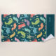 Adicione um toque Jurássico personalizado à viagem oceânica do seu filho com esta toalha monograma de praia de dinossauros. A toalha tem um padrão de dinossauros coloridos num fundo azul escuro e o seu nome e monograma no canto inferior direito. Há também palmeiras e cactos. A toalha de praia faz um belo aniversário personalizado, Natal ou outro presente de Natal, especialmente para um menino!
