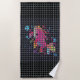 Beach towels featuring an illustration of a colorful fish-like animal behind a a 3D-like net. You can replace the image of the fish with your own if you like.