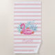 Toalha de praia tropical com desenho animado rosa flamingo.