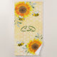 Toalha De Praia Flores de girassol amarelo de abelhas monograma de