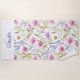Relaxe e desfrute do estilo floral com esta elegante toalha de praia. A toalha de na moda é branca com um padrão bonito de flores silvestres. Quer você esteja se desenrolando na praia, na piscina ou no jardim, esta toalha faz um acessório chic para o verão. Personalize com seu nome e inicial, que formará um monograma no topo da design.