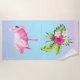 Toalha De Praia Flores Tropicais Buquê e Flamingo Rosa