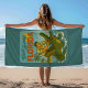 This vicious alligator is no match for this fearless, muscle bound Florida man. as he wrestles the thrashing beach gator into submission with ease. Vintage-inspired 'Visit Sunny Florida' is a humorous spin on a classic Florida travel poster and designed to make you chuckle. This funny nautical teal blue towel is perfect for anyone who enjoys a little Florida chaos. Made for the beach, fishing trips, surf sessions, paddle sports and everyday coastal life by the pool.