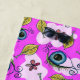 Este design surreal moderno apresenta aquarelas, flores e folhas sobre um fundo de nuvens em roxo.