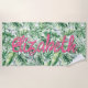 Toalha De Praia Folhas de Palmeira Tropical em Aquarela Nome Perso