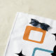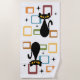 Ilustração colorida do estilo do Meio século abstrato com gato preto, estrelas pretas e ornamentação colorida em fundo branco. Você pode adicionar seu nome/monograma para personalizar o item.