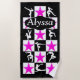 Este excitante ginasta vai tropeçar, sacudir, saltar e voar para esta incrível toalha de praia personalizada da ginástica, preta e rosa, do www.zazzle.com/mysportsstar. Essa bela Gymnastics Girl está indo em busca de ouro e pronta para se tornar um campeão de ginástica. Esta bela toalha de praia da ginástica é o presente perfeito para os aniversários, feriados ou qualquer ocasião. Mostre ao seu incrível ginasta seu amor e apoio com a toalha de praia motivacional personalizada da ginástica que ela adorará usar durante todo o ano.