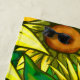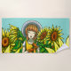Uma garota num campo de girassóis numa tarde quente de verão.