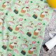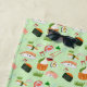 Esta design encantadora inclui sushi Kawaii sorridente, rolos de tempura de camarão, rolos Ikura, rolos da Califórnia, salmão, Maki e rolos de atum.