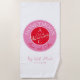Toalha de praia de mel, cor-de-rosa, vermelha e magenta, contemporânea, moderna, única e vibrante, para recém-casados com monograma - iniciais, nomes, local, data, desenho de aves casais românticas únicas e rotinas de amor e roteiro caligrafia manuscrito.