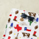 Esta toalha apresenta todos os seus ícones favoritos do Texas; chapéus de cowboy, botas, cactos, guitarras, bluebonnets, bolas de futebol, longhorns e, claro, a bandeira do Texas!