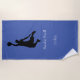 Beach Towel apresenta uma silhueta de um jogador de basquete em um fundo azul com texto...regras de basquete... Você pode personalizar facilmente com sua escolha de texto.
