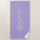 Nome de script de tendência de corte Toalha de praia personalizada na Lavanda Roxo