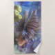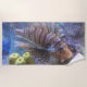 Nesta Praia, o adorável lionfish está nadando em um aquário de água salgada colorida. É uma fotografia original de ZoeSPEAK, mostrando o padrão de tiras espessas e finas e barbatanas de rico neste peixe com aparência incomum. É uma foto colorida com o azul tropical, amarelo e rosa do aquário e o nariz rosa-salmão do peixe.