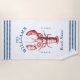 A toalha de praia da Lobster Beach House costeira apresenta uma lagosta vermelha com marinho azul listrado em cada extremidade. Personalize-o com o seu nome de família e a data estabelecida. Perfeito para casas de praia de verão, casas de água e férias familiares.