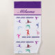 Louca por causa da toalha de praia da ginástica com o nome da sua ginasta! Carregado com silhuetas coloridas de ginastas por toda parte!