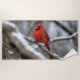 Um Cardeal vermelho brilhante adiciona uma pop de cor num dia de neve sonhador.