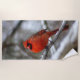 Um Cardeal vermelho brilhante adiciona uma pop de cor num dia de neve sonhador.