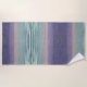 Esta toalha de praia tem um design abstrato que consista em fitas das cores do mar. As cores são azuis, roxos silenciado, e malvas. Duas das fileiras da cor são branco azul e prateado striated para assemelhar-se ao sol na água. Esta é uma toalha tão bonito, você pôde querer pendurá-la na parede para o art.