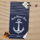 Toalha De Praia Marinho Azul Ângulo Náutico Adicionar Nome de Barc