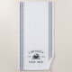Personalize sua casa de praia ou praia com esta linda toalha de praia personalizada com seu nome familiar ou nome de casa e ano, estabelecida em marinho azul, destacada com uma ilustração caranguejo em um fundo branco.
