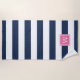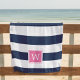 Toalha De Praia Marinho Stripe e Monograma Rosa