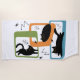 Ilustração colorida do estilo do Meio século abstrato com gatos pretos, estrelas pretas e casacos coloridos decorados sobre fundo branco