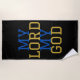 Esta toalha de praia exibe as palavras "Meu Senhor Meu Deus" em uma impressão ousada letra com letras azuis e ouros coloridas em um estilo tipográfico e tema baseado na fé. A frente desta toalha é uma mistura de poliéster, a parte traseira é 100% de algodão com uma vibrante impressão de sublimação, que é projetada para durar. Aproveite esta toalha para o próximo piquenique, praia getaway ou qualquer atividade ao ar livre que você possa assistir todas as toalhas são laváveis por máquina com roupa seca e baixa velocidade recomendada.