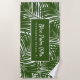 Uma toalha de praia com padrão de palma super cônica com espaço para adicionar seu nome de casa de praia ou sua citação favorita de férias de praia. Várias cores disponíveis, e as cores também são editáveis no editor avançado, para que você possa criar uma toalha divertida com vibrações em cores da ilha para combinar com o seu banheiro!