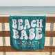 Mergulhe na celebração com a nossa toalha de praia retrô para festa de despedida de solteira Beach Babe Teal Cool - o presente ideal para a despedida de solteira com tema de praia! Esta toalha de praia personalizada é mais do que um acessório elegante; é uma escolha atenciosa e personalizada para presentes para as damas de honra, presentes para a dama de honra ou até mesmo presentes para a irmandade.
