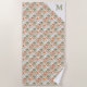 Uma bela toalha de praia para o hippie moderno, com um padrão de flores em laranja queimado e verde-sábio. Personalize com seu início no canto para um toque de final individual.