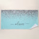 Toalha De Praia Monograma de Prata Leve Azul Aqua