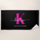 Toalha De Praia Monograma de Script Rosa Quente Preto Elegante