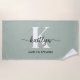 Toalha De Praia Monograma de Script Verde Sage