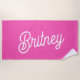 Toalha De Praia Monograma e Nome Personalizados de Rosa Quente Mod
