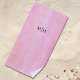 Esta toalha de praia de na moda apresenta uma aquarela rosa com suas iniciais em tipografia elegante e preta.