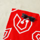 Esta toalha de praia tem um design moderno do século médio de um coração branco disperso num campo de vermelho.