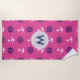Este design de toalha de praia do monograma pelas âncoras brancas das características de Frog™ de serapilheira e os azuis marinhos enviam as rodas em um fundo cor-de-rosa com um círculo cinzento para sua inicial. Personalize esta toalha de praia na moda com sua inicial. Clique "personalizam-no!" abotoe para mudar o tamanho do texto, a cor de texto, o estilo de pia batismal e o mais! Copyright ©2018 a serapilheira Frog™