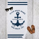 El diseño de Toalla de playa náutica con un diseño sencillo y elegante de estilo costero blanco y azul marino con Logotipo de ancla. Personalice el texto del personalizado con el nombre de su barco junto con su ubicación, ciudad y estado. Regalo Ideal para propietarios de botes con temática náutica. No lo piense y Adquiera este Lindo diseño de Toalla Nautica para bote.