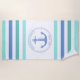 Perfeito durante um dia na praia, esta toalha temática náutica apresenta o aqua, o verde-marinho e as listras azuis médias em cada extremidade. No centro há uma âncora azul em um design circular junto à corda. Acima da âncora está seu nome familiar e abaixo do ano estabelecido para você personalizar. Gostamos de criar este para ti. Aproveite!