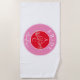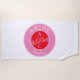 Toalha de praia de casamento contemporânea, moderna, vibrante vermelha e rosa presente para damas de honra para a noiva com monograma - iniciais, nome, desenho exclusivo de casal de pássaros de amor romântico e caligrafia manuscrita trendy.
