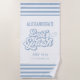 O complemento final para as sacolas de presentes da despedida de solteira! Perfeito para lembrancinhas da festa, esta toalha é indispensável para qualquer tema de despedida de solteira à beira-mar ou com tema costeiro. Seja celebrando no lago ou em uma festa de despedida de solteira na piscina, esta toalha elegante é um excelente presente para a noiva e para as damas de honra. Seu design azul vibrante é ideal para uma despedida de solteira com um último mergulho, adicionando um toque de elegância e diversão à sua festa de despedida de solteira com tema costeiro azul. Faça seu evento especial inesquecível com este acessório essencial para despedida de solteira!