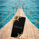 Um fundo na moda preto. Decorrido com uma parte de dois volantes dourados falsos. Personalize e adicione o nome do barco.